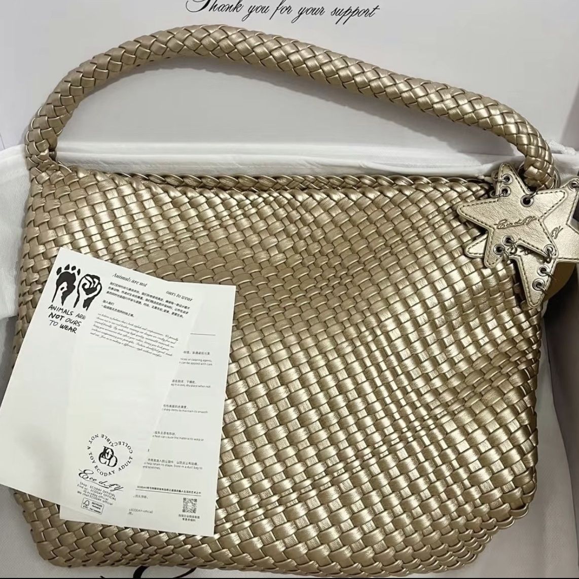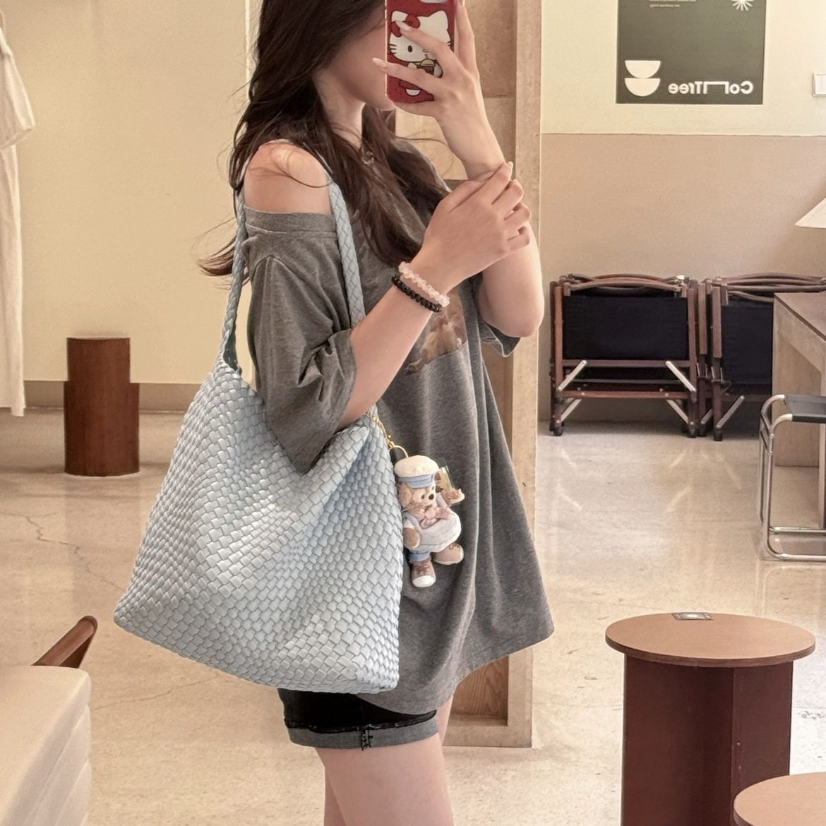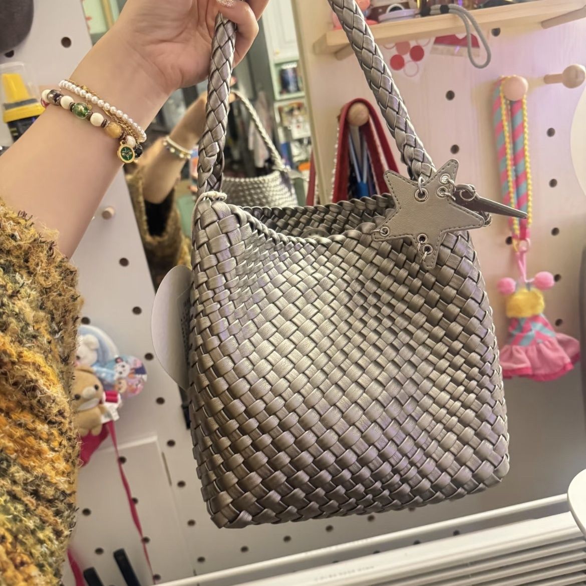 高级2025新款真皮编织托特包手提单肩大容量通勤原创设计腋下包女