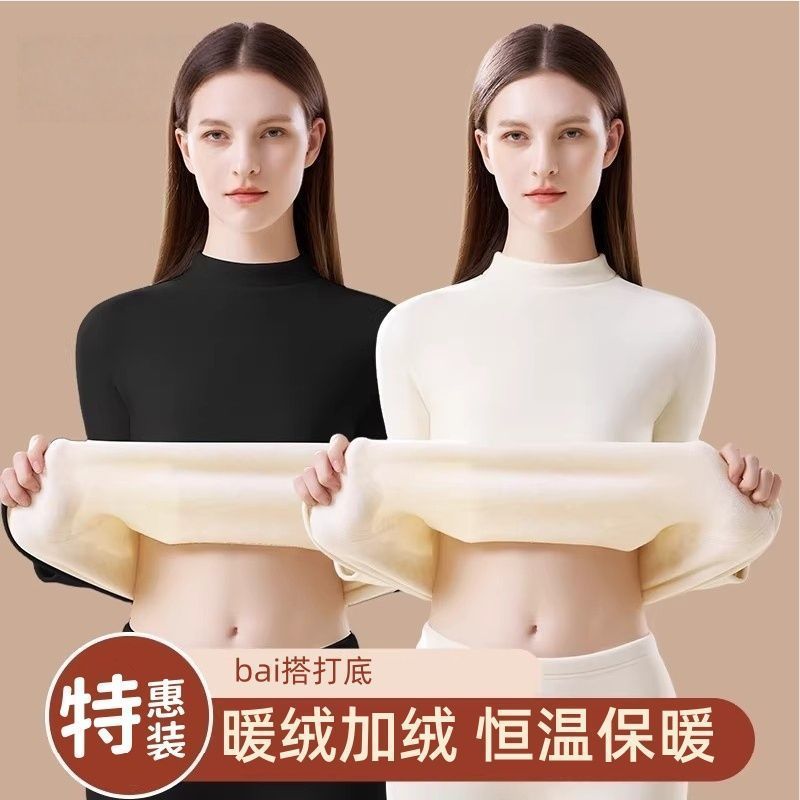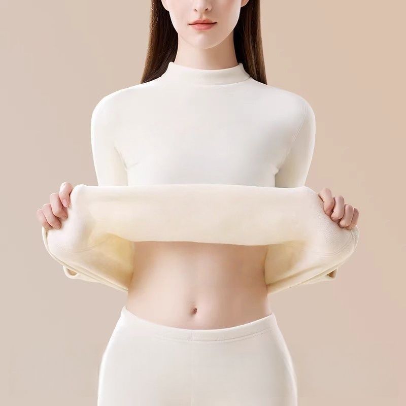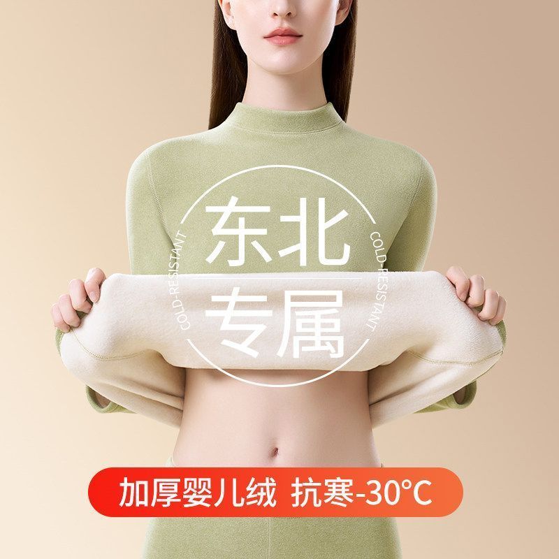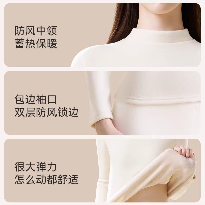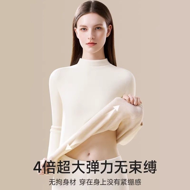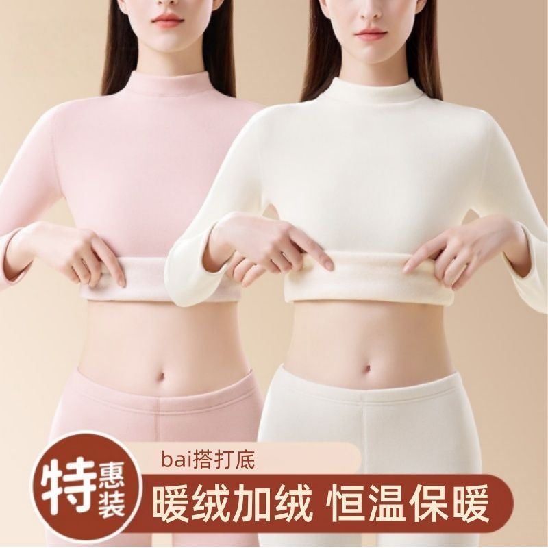 保暖内衣女士加绒加厚防寒中高领发热打底秋衣套装冬季时尚套装