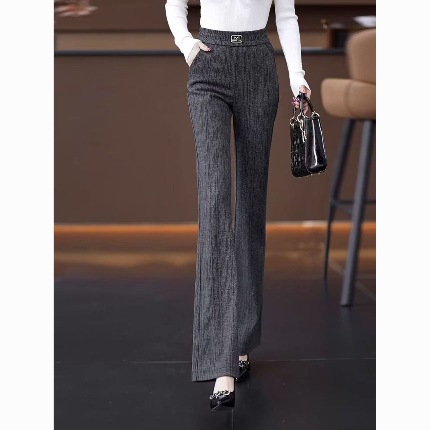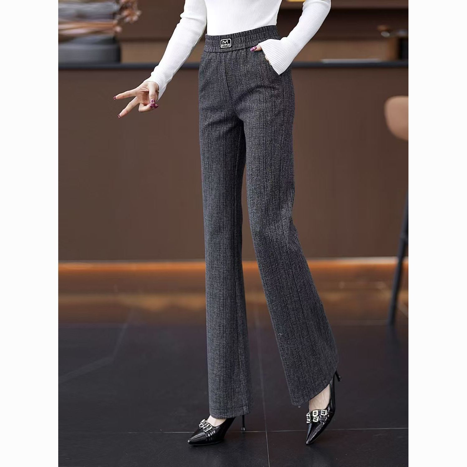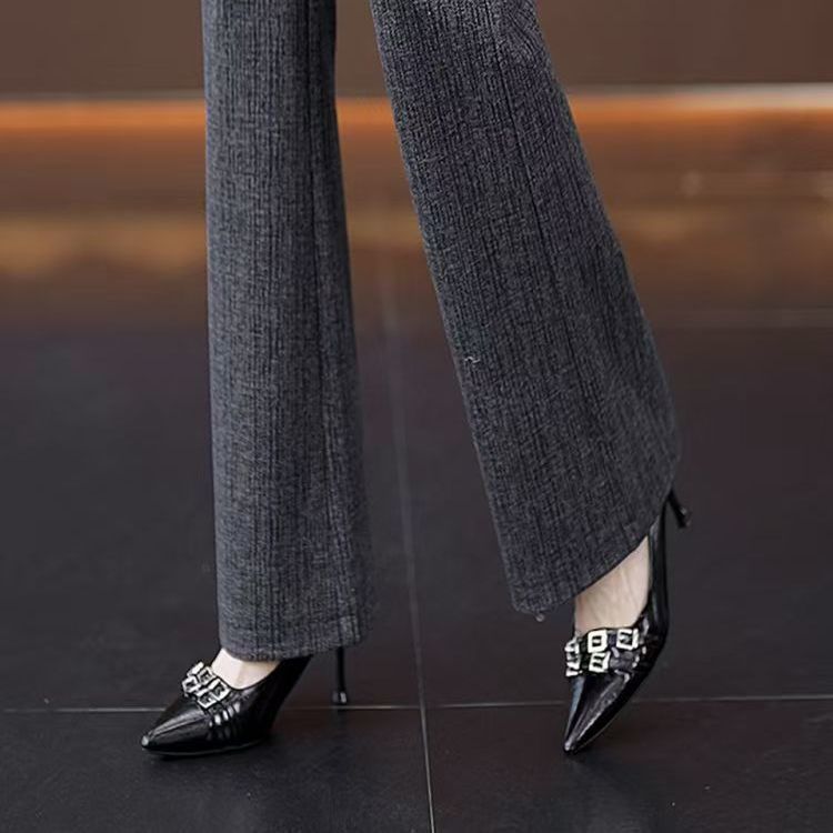 2026新款喇叭裤灰色女高腰窄版百搭修身显瘦休闲春夏秋季微喇裤子