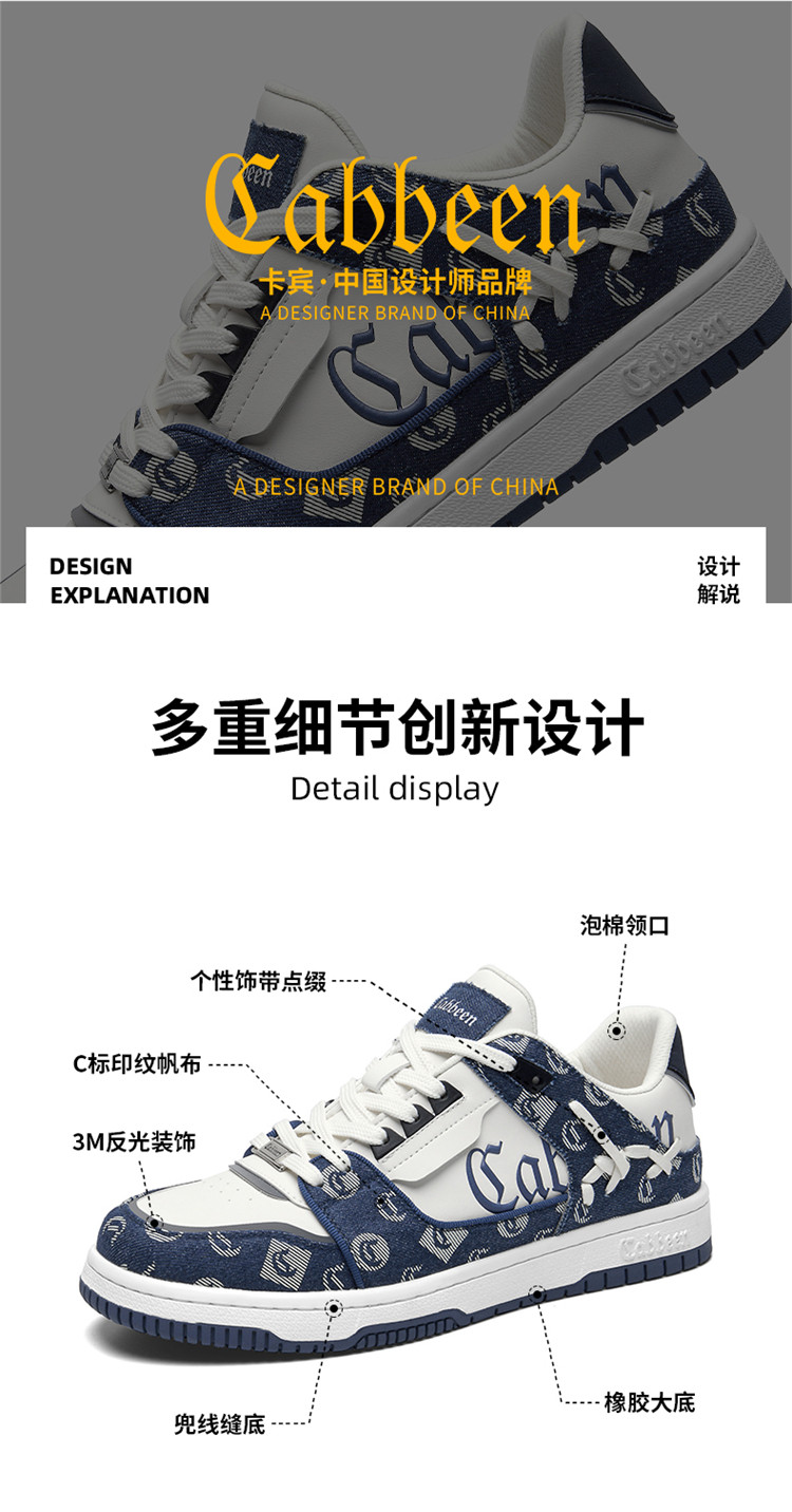卡宾 【时尚腰果花C标】男女情侣鞋四季休闲运动拼色耐磨百搭板鞋
